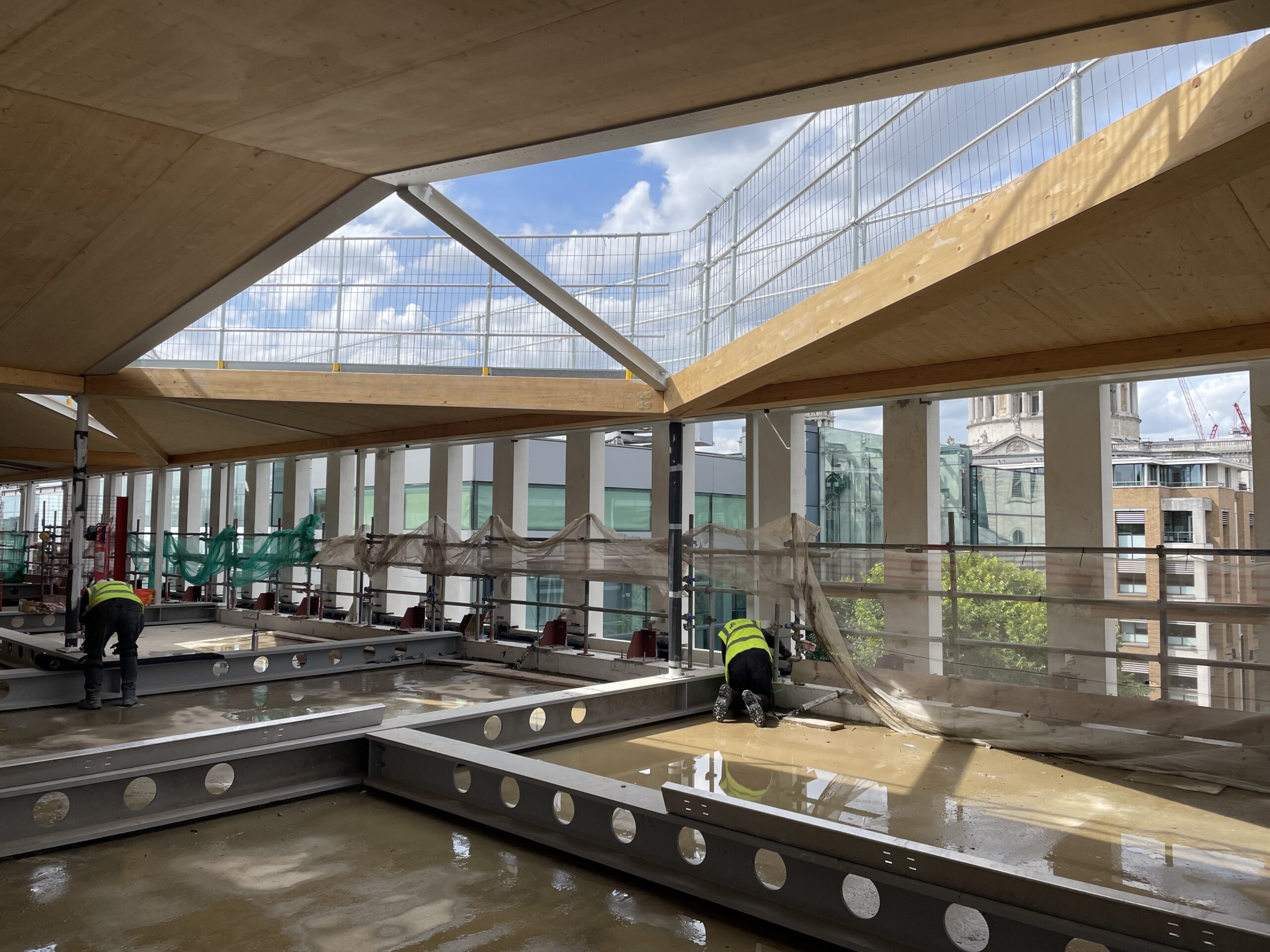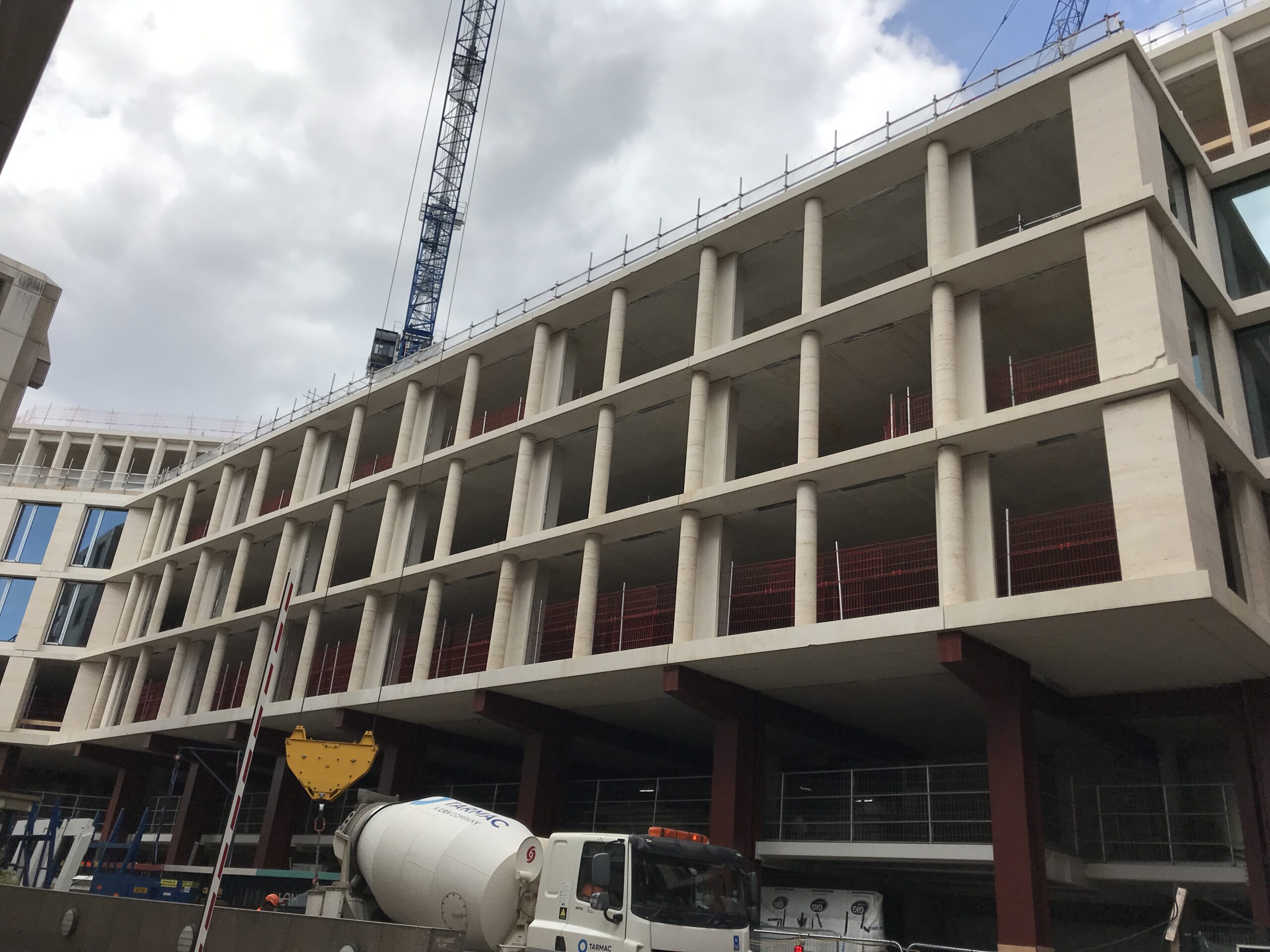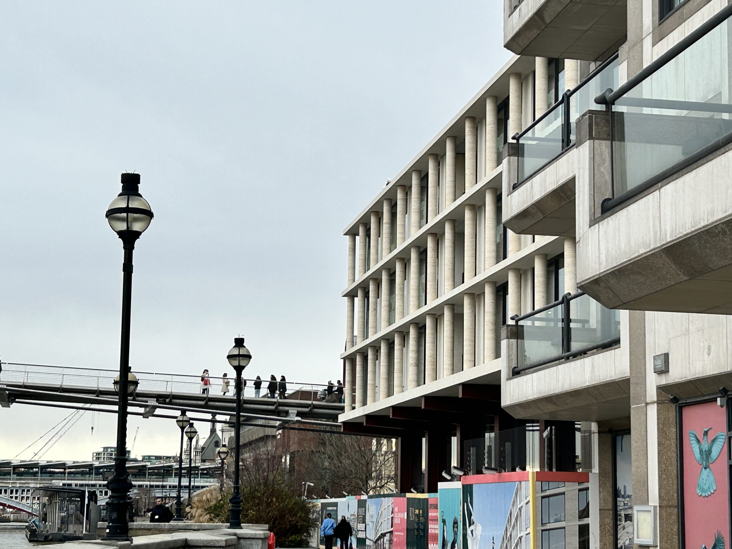 The South façade was one of the main technical challenges of the project, with solid circular Jura stone columns spanning vertically between a series of cantilevered, thermally broken, horizontal ledges at each floor. The circular stone columns sit in front of a series of glazed sliding doors making up the bulk of the façade and allowing for a physical connection with the river, as well as a stunning views over the water and the opposite bank beyond.