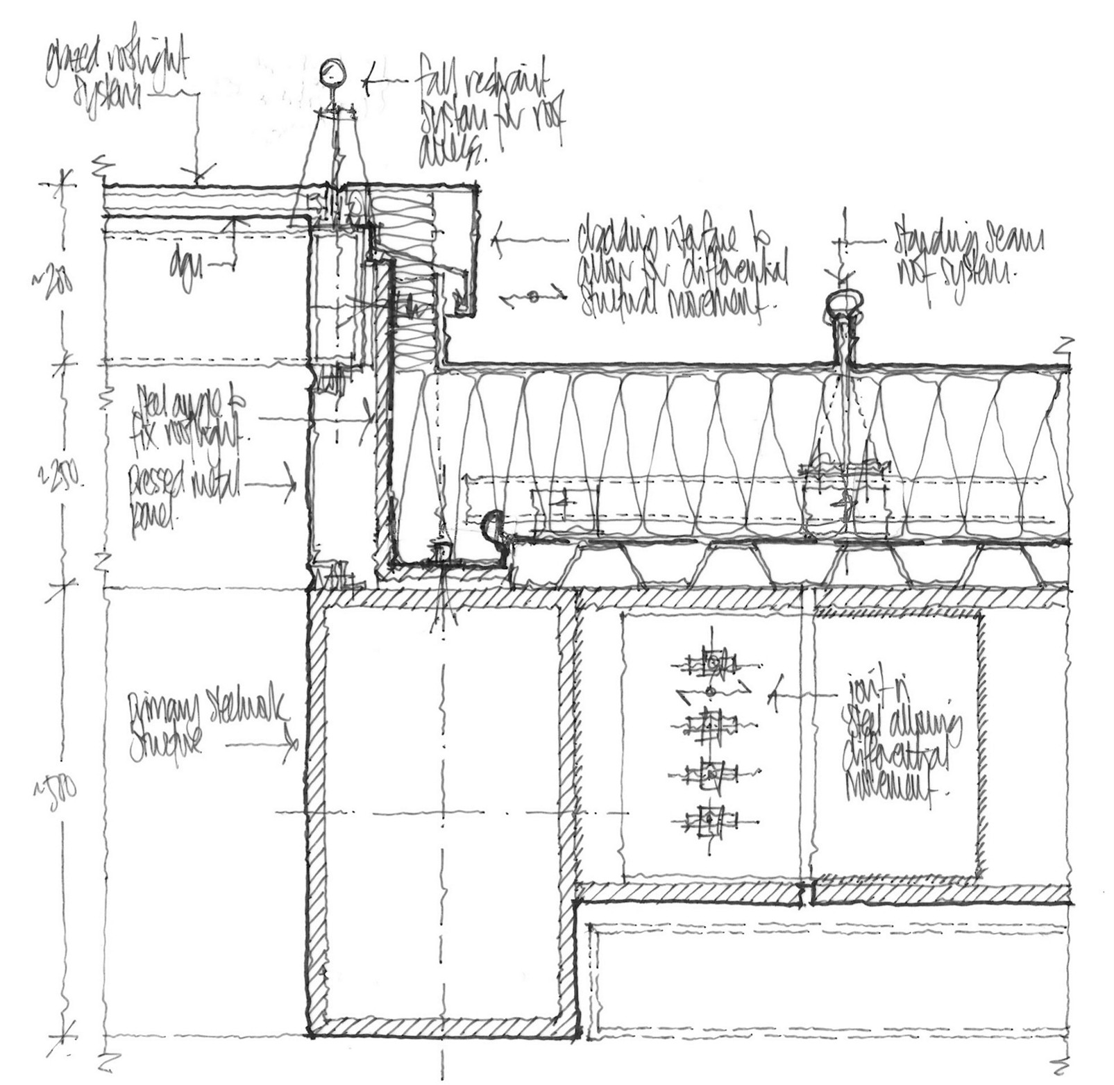 One of the key challenges was the interface detailing and specification of the various cladding elements. FMDC assisted Hopkins with the design intent detailing and performance specification of the facades. Laterally FMDC carried out site visits during construction to inspect the installed façade works.